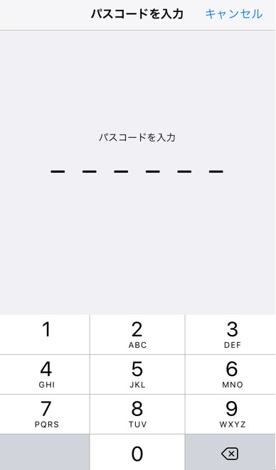 パスコードを求められますので、iPhoneに設定しているパスコードを入力します。