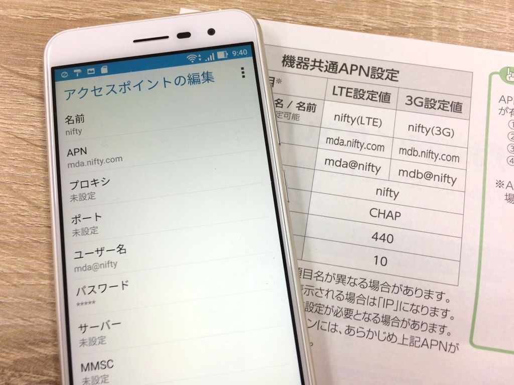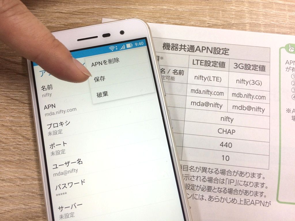これでアンドロイドのAPN設定は完了です。