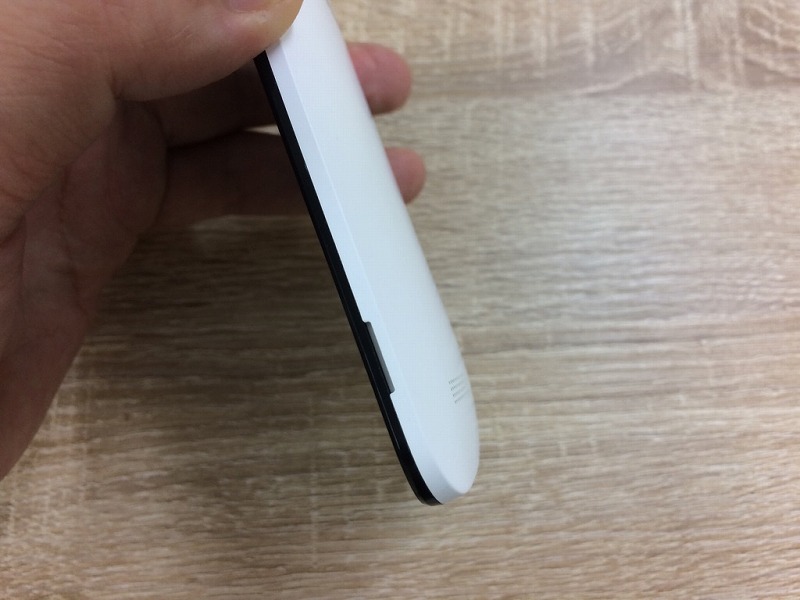 SIMやmicroSDの挿入口は背面カバーの中にあります。サイドにあるこのくぼみに爪をひっかけてカバーを外します↓