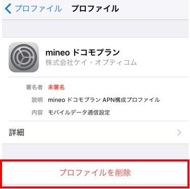 「プロファイルを削除」のボタンが表示されるのでタップします。
